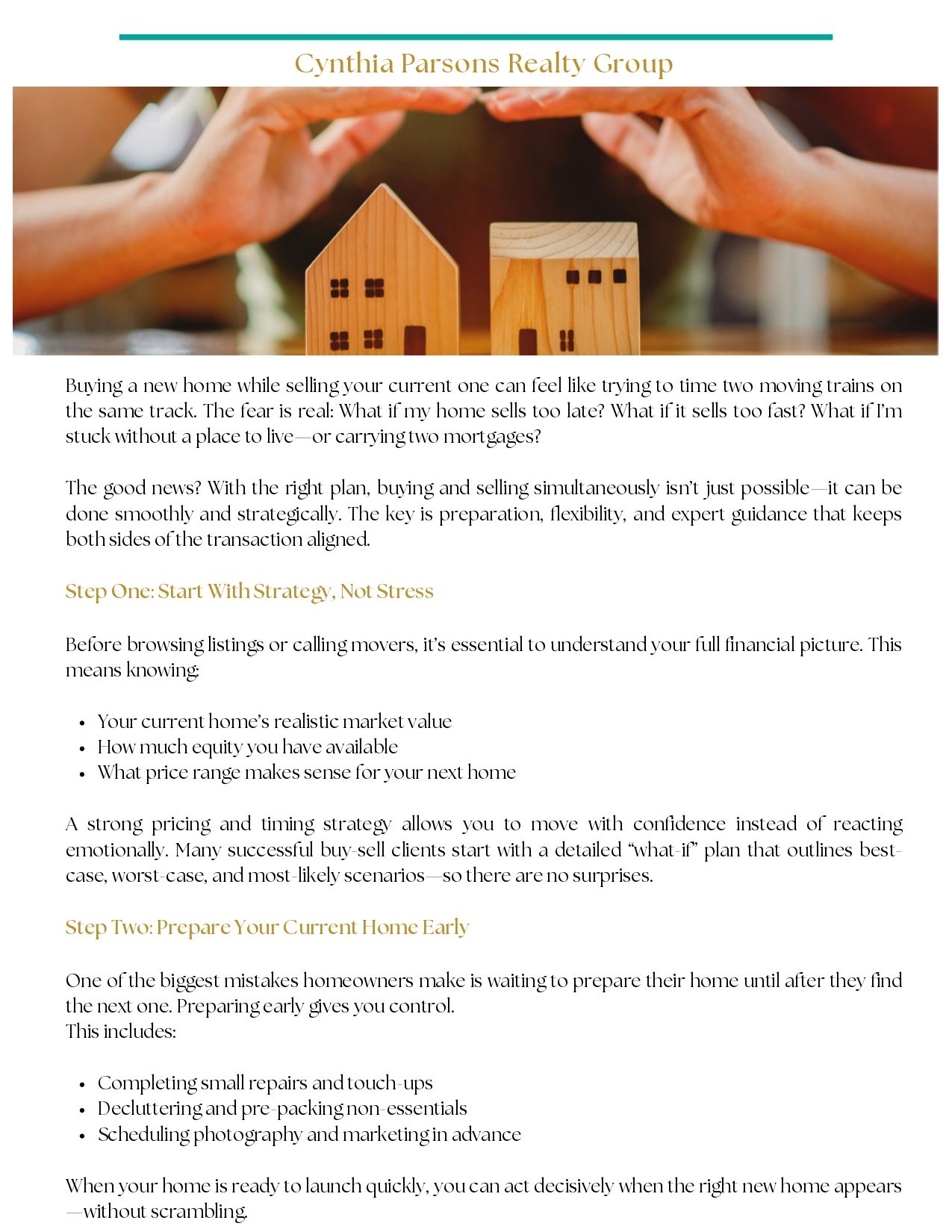 Buying a new home while selling your current one can feel like trying to time two moving trains on the same track. The fear is real: What if my home sells too late? What if it sells too fast? What if I’m stuck without a place to live—or carrying two mortgages?