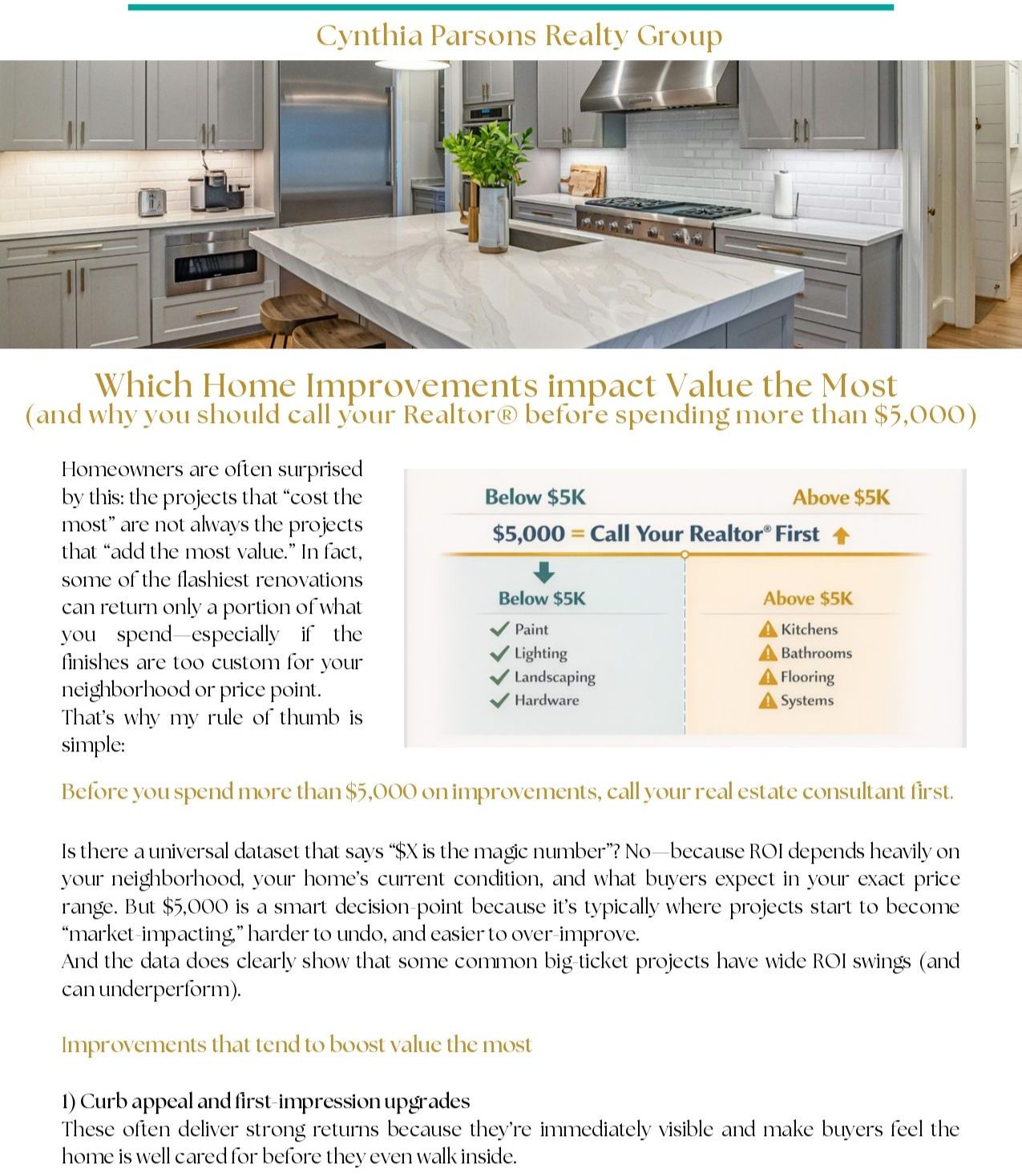 Which Home Improvements Impact Value the Most And Why You Should Call Your Realtor® Before Spending More Than $5,000)